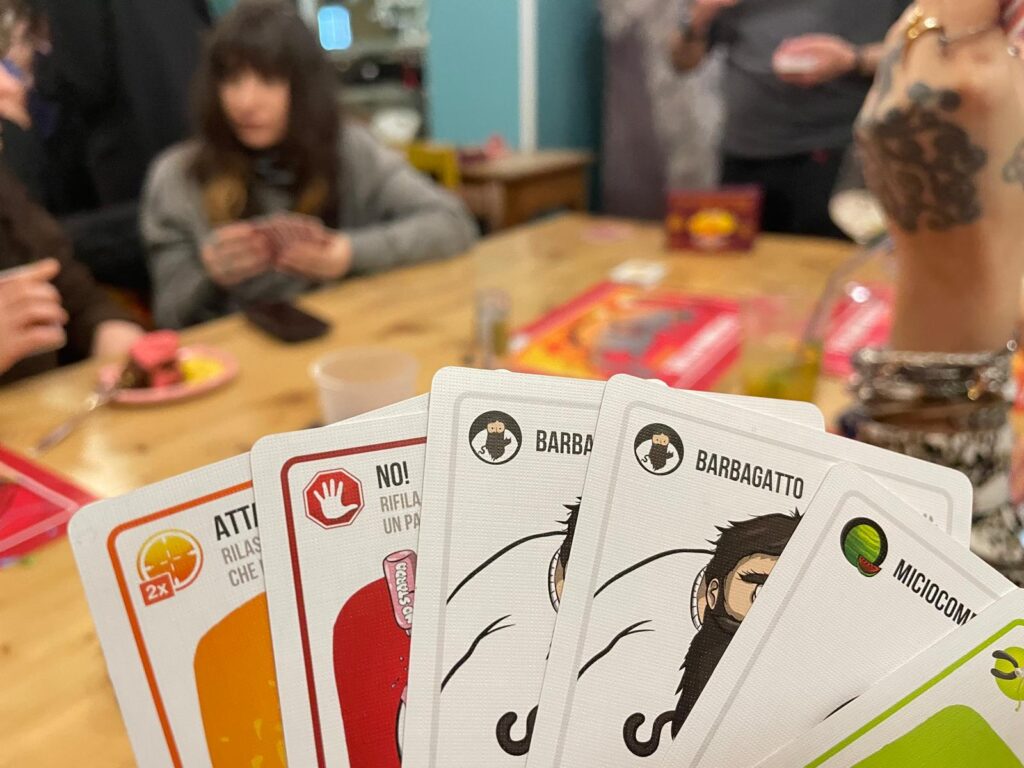 Naturalmente, non é mancato il tempo di giocare: la seconda parte della serata ci ha visti coinvolti in un torneo tanto divertente quanto spietato, all’insegna del concept semplice e intuitivo di Exploding Kittens: gioca le tue carte, tradisci i tuoi amici e non esplodere. A gestire il nostro tavolo un mazziere d’eccezione: Massimo Bianchini, Country Manager di Asmodee Italia.