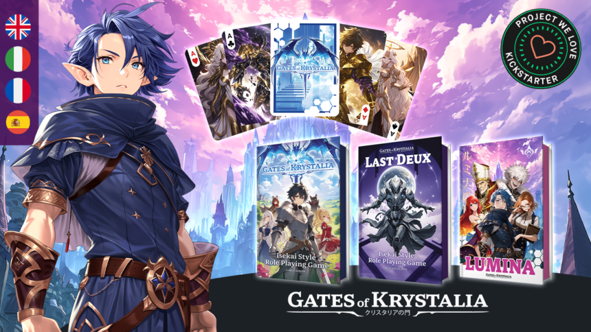 È ufficialmente partita la campagna Kickstarter per Gates of Krystalia – Lumina: The Card-Based Anime TTJRPG. Il progetto, firmato Top Notch International LTD, promette di trasportare i giocatori in un mondo ispirato agli anime isekai, dove le meccaniche tradizionali dei giochi di ruolo vengono sostituite da un sistema di combattimento strategico basato su carte. I giocatori potranno immergersi in un’esperienza narrativa ricca di colpi di scena, con una forte enfasi sulla crescita dei personaggi e su battaglie spettacolari e cinematografiche.