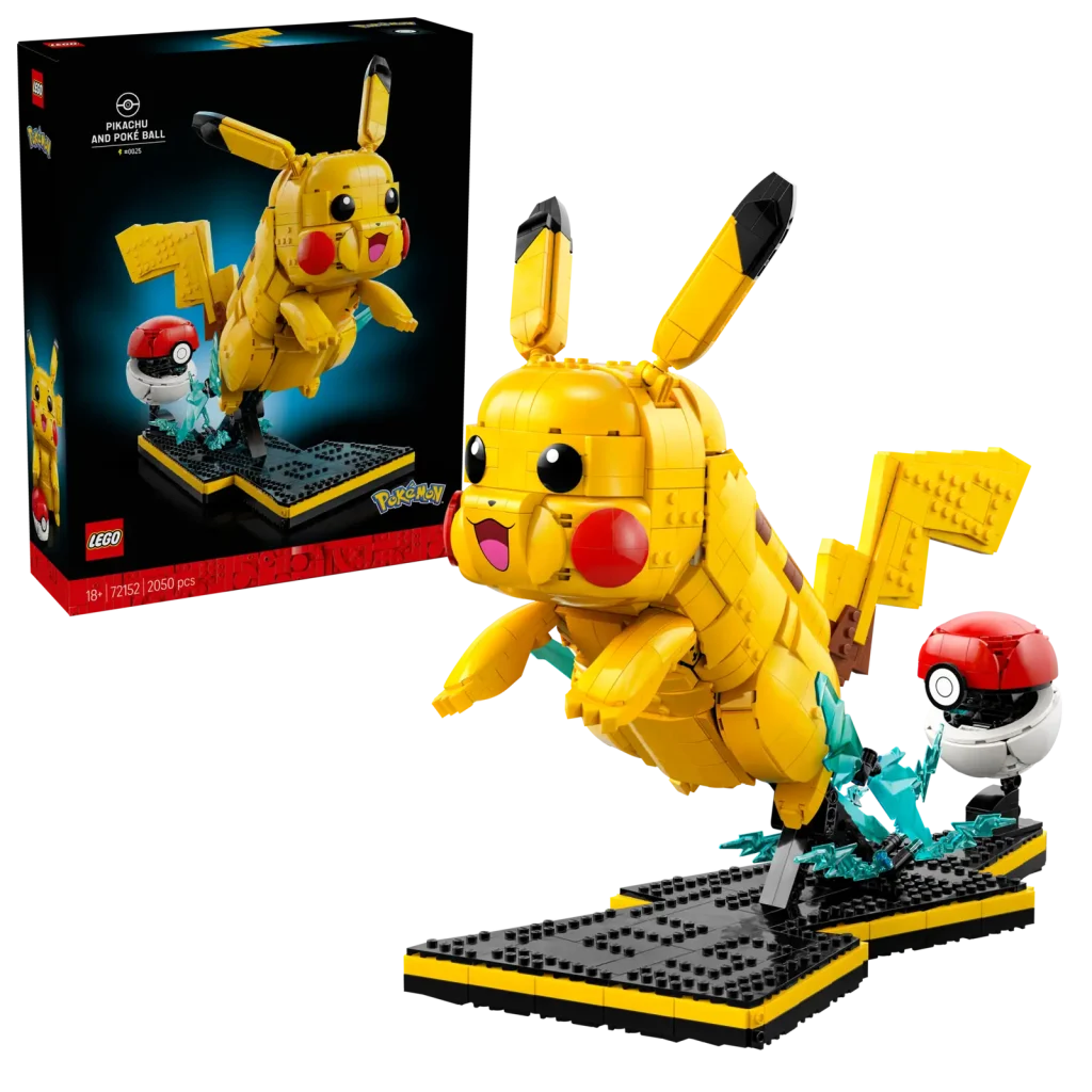 Il set sarà un set regalo che i collezionisti potranno ricevere effettuando ulteriori acquisti: si tratta di un articolo omaggio che si riceve acquistando il Pikachu con Pokéball LEGO Pokémon (72152), dal prezzo di 199,99 euro e formato da 2050 pezzi o un altro dei pregiatissimi pezzi da collezione che mostriamo qui di seguito…