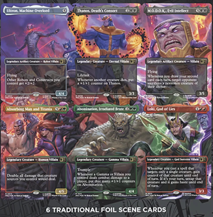 Per i collezionisti, le immagini svelano i Traditional Foil Scene Cards, speciali collage di carte che ritraggono eroi come Iron Man, Hulk e Thor, o villain del calibro di Ultron, Thanos e Loki. Questa collaborazione segna un punto di svolta per la linea Mondi Altrove, integrando meccaniche classiche di Magic con l’immaginario dei fumetti Marvel. Restiamo in attesa di comunicazioni ufficiali da parte di Wizards of the Coast per conoscere le date di uscita definitive.