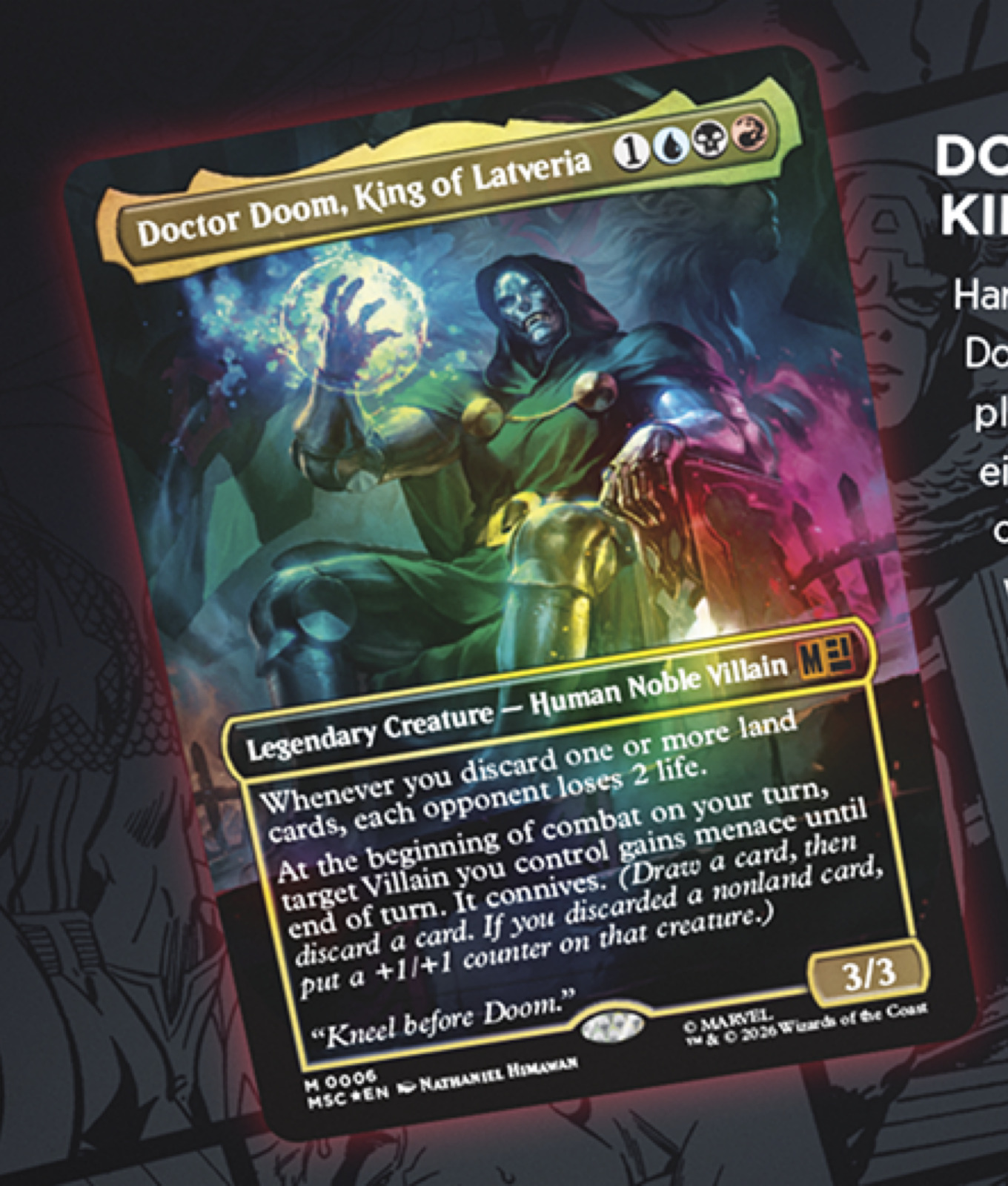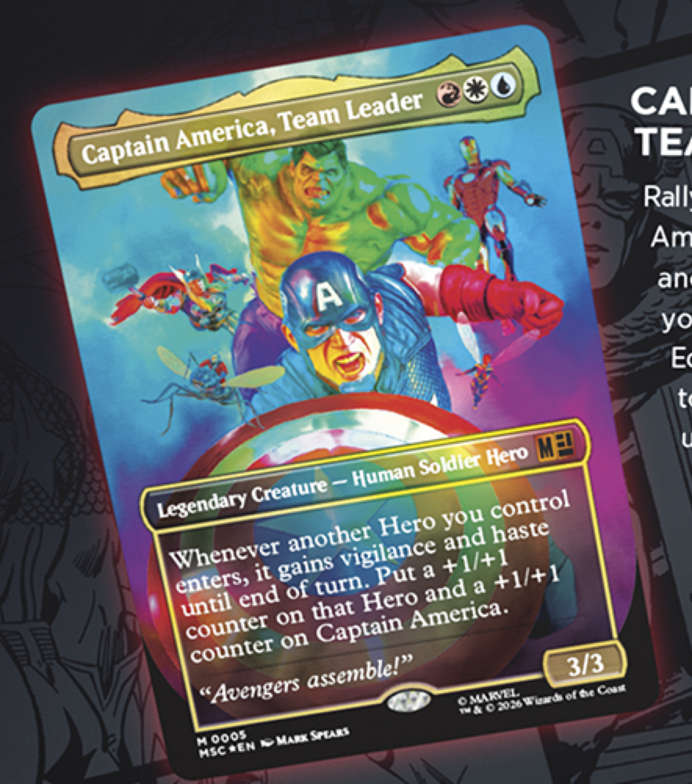 L’altro grande protagonista dei leak è il crossover con la Casa delle Idee. Il prodotto Jumpstart Marvel Super Heroes permetterà di mescolare buste tematiche per creare mazzi unici basati sui supereroi e i supercriminali più famosi. Tra le carte mostrate spicca Captain America, Team Leader, un eroe capace di potenziare gli altri alleati con segnalini +1/+1, cautela e rapidità. Non mancheranno icone come T’Challa, the Black Panther, in grado di generare pedine Vibranio indistruttibili, e il temibile Doctor Doom, King of Latveria.