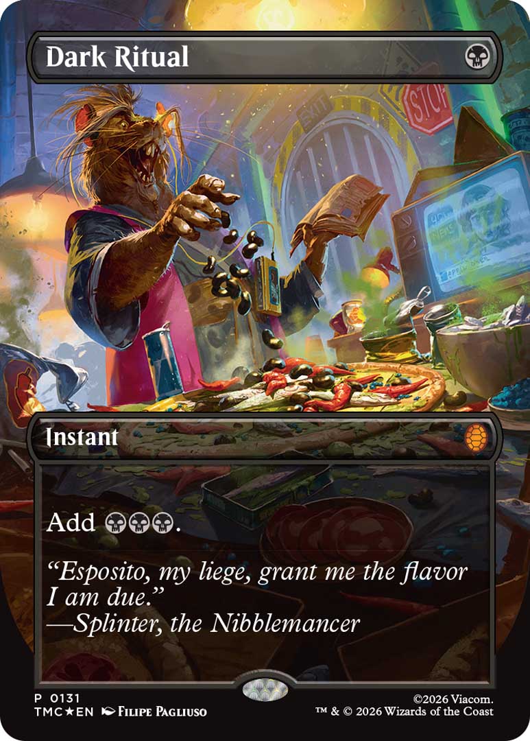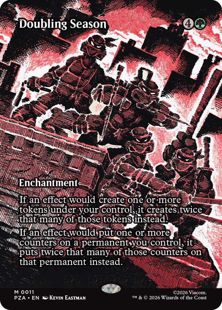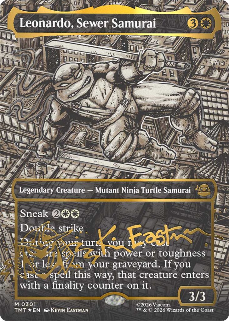 Wizards of the Coast ha diversificato l’offerta per soddisfare sia i giocatori competitivi che i collezionisti puri. Tra le versioni più ricercate nei Collector Boosters spiccano le carte Borderless Signature, che presentano illustrazioni inedite realizzate dal co-creatore delle Tartarughe Ninja, Kevin Eastman, accompagnate dalla riproduzione della sua firma.