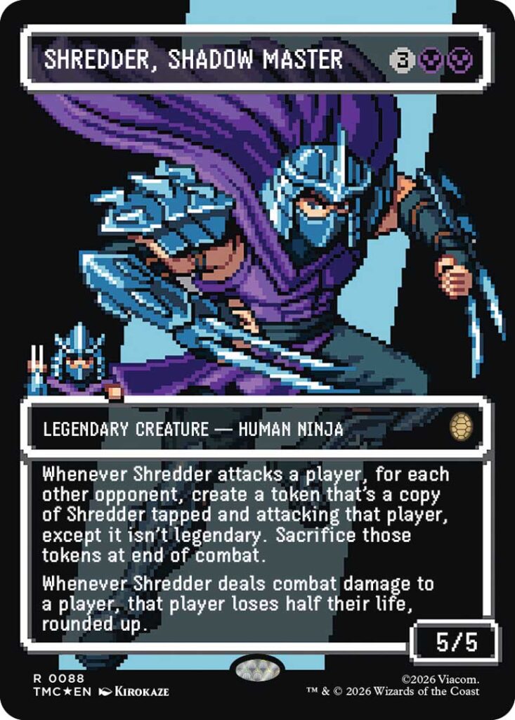 Una delle aggiunte più interessanti per l’ecosistema di Magic è l’introduzione di Turtle Team-Up. Progettata sulla base del formato Two-Headed Giant, questa modalità cooperativa permette a 2-4 giocatori di unire le forze contro un Boss Deck automatizzato di 38 carte, gestito dalle meccaniche del gioco e guidato da Shredder.