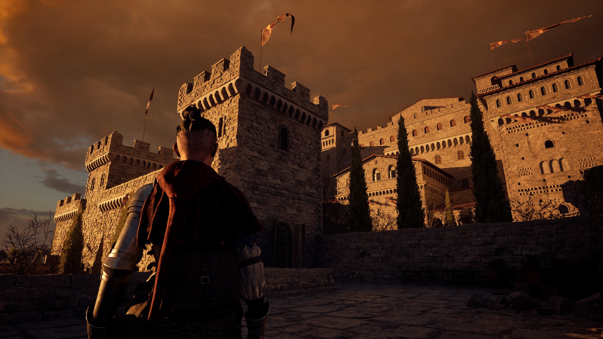 Non passa molto tempo però dopo il video iniziale, che ci renderemo conto che qualcosa non va: il villaggio di Aeta, non molto lontano dal posto dove si sta allenando, è stato attaccato dai Briganti (che nonostante il doppiaggio in inglese viene detto specificatamente in italiano, come se si trattasse di una fazione ndr.). Questo villaggio era già debole a causa della peste e delle guerre, e le difese erano al minimo storico, e Aeta lo sa bene. Quindi corre all’impazzata per raggiungere il villaggio con l’unico pensiero di ritrovare Bianca, che doveva essere proprio lì.