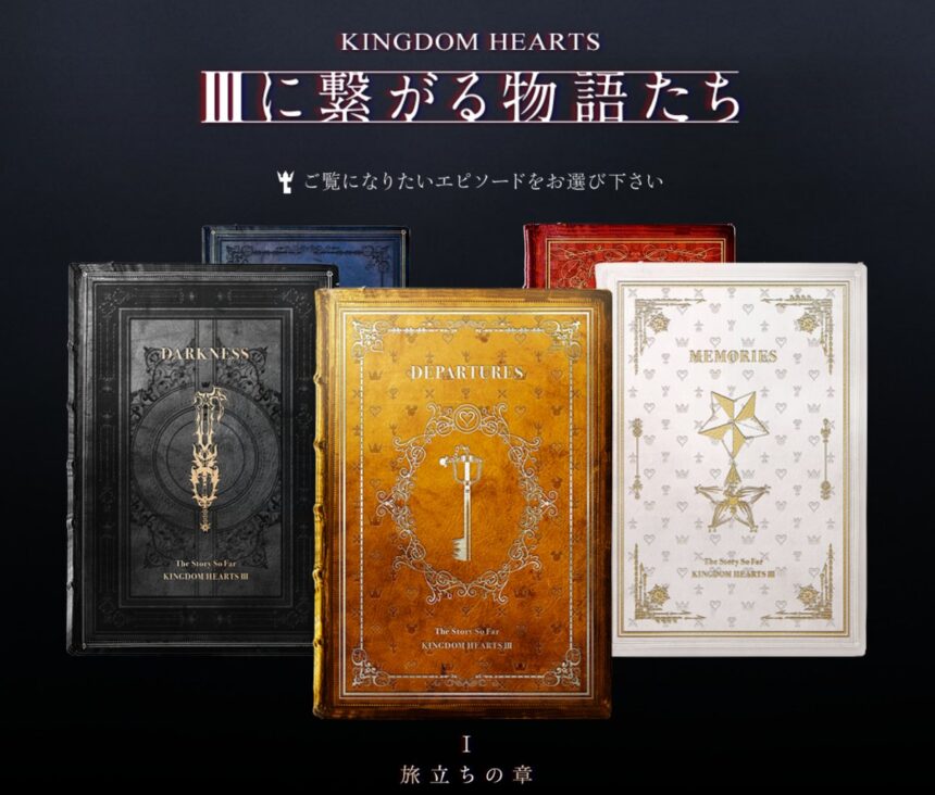 Per ora il video è disponibile solo in lingua giapponese, però viene raccontato in lingua inglese da Chirithy di Kingdom Hearts Union X, ed è stato diviso in cinque parti. I titoli di queste cinque parti sono: “Departures“, “Memories“, “Twilight“, “Dawn” e “Darkness“. Qua sotto trovate i link che vi rimandano ai video riassunti realizzati come se fossero un libro: