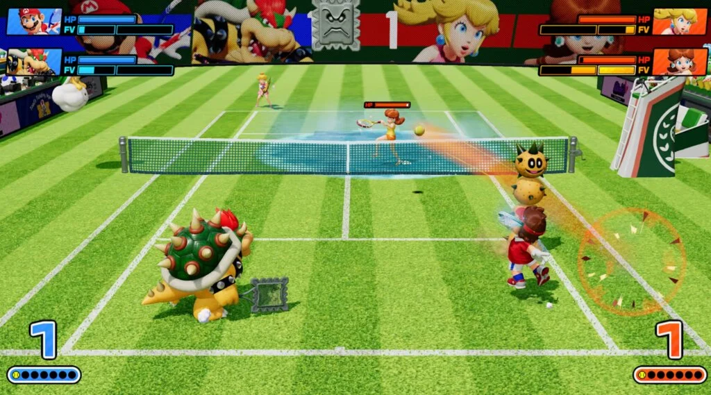 Infine, dal punto di vista tecnico, il gioco si difende bene. Colorato, fluido, leggibile anche nei momenti più caotici. Gli effetti delle racchette speciali, per quanto eccessivi, sono sempre chiari e mai confusionari. La direzione artistica resta fedele all’universo Mario, con animazioni espressive e un’identità visiva forte. Non è un titolo rivoluzionario sul piano tecnico, ma è solido, coerente, funzionale.