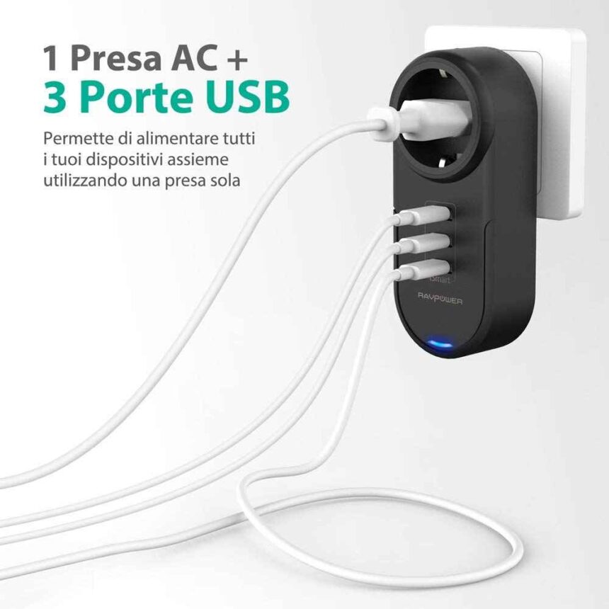 Oggi nella nostra rubrica “L’offerta Amazon del giorno” vi proponiamo un prodotto molto interessante. Ieri in offerta c’era il Huawei P20 ad un ottimo prezzo. Uno smartphone dalle caratteristiche veramente interessanti un buon processore, un ottimo comparto fotografico e un design niente male. Oggi vogliamo proporvi un accessorio tanto economico quanto utile. Se anche voi avete mille cose tra smartphone, tablet e prodotti vari da ricaricare, questa Multipresa USB RAVPower farà al caso vostro. E’ un classico caricatore da muto ma con ben 3 prese USB molto utili se si devono caricare diversi apparecchi. Pratico e poco costoso infatti si trova ad appena 12 euro.