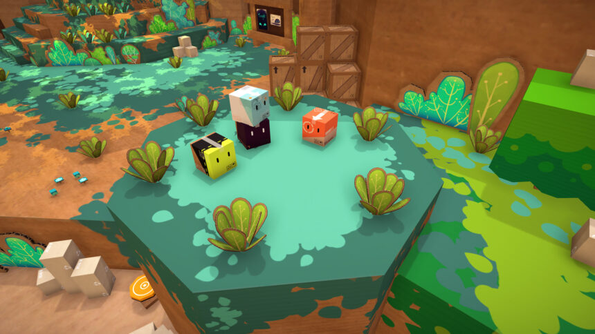 Sia chiaro, non stiamo assolutamente parlando di difetti capaci di rovinare in toto l’esperienza ludica, ma di problemi che possono pregiudicare la ricerca dell’eccellenza per il prodotto. Infatti il comparto platform è probabilmente il lato meno eccellente dell’opera di Seed By Seed che, gamepad alla mano, è risultato poco responsivo e a tratti impreciso, senza contare poi che la forma di cubo del personaggio non aiuta sempre a identificare con chiarezza se si è ancora in tempo per inviare l’input del salto o meno prima della caduta in un burrone. Fortunatamente tale piccola imprecisione è comunque bilanciata da un sistema di respawn istantaneo poco vicino al punto di caduta, che però alla lunga può risultare lievemente frustrante. A questo proposito si aggiunge anche un livello di sfida tendente al basso se si prova a giocare in singolo giocatore senza provare a ottenere i rari collezionabili, sparsi per i livelli e protetti da enigmi più ostici della media, che di conseguenza vi consigliamo caldamente di provare a ottenere, almeno per aumentare la longevità del prodotto di qualche ora in più. Un’altra criticità di Pile Up! Box By Box sta infatti proprio nella durata complessiva dell’avventura che si attesta, al pari della versione PC, come relativamente scarsa, e anche il completamento al 100% del gioco è un compito piuttosto semplice.