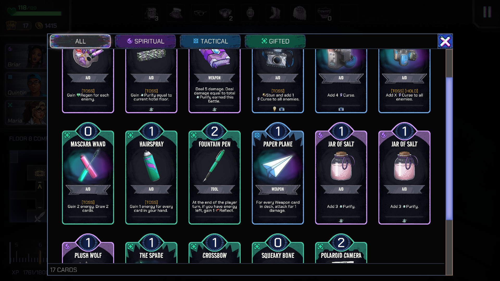 Come detto, i teenager neodiplomati tra cui potremo scegliere sono 8, e si dividono in 4 categorie in base alle loro caratteristiche. I più sportivi si avvalgono principalmente della forza, i tecnici di oggetti e tool in grado di maledire o stunnare i nemici, gli spirituali si dedicano in primis a purificare o a curare, mentre i gifted hanno delle capacità legate a pescare carte o a guadagnare monete. Nulla toglie che tutti indistintamente possano fare danno, e mettiamoci anche che le carte che avrete in mano saranno dell’intera squadra, non saranno divise in singoli. Anche la vostra salute totale sarà condivisa, quindi non ci troviamo di fronte a uno strategico a turni vecchio stile.