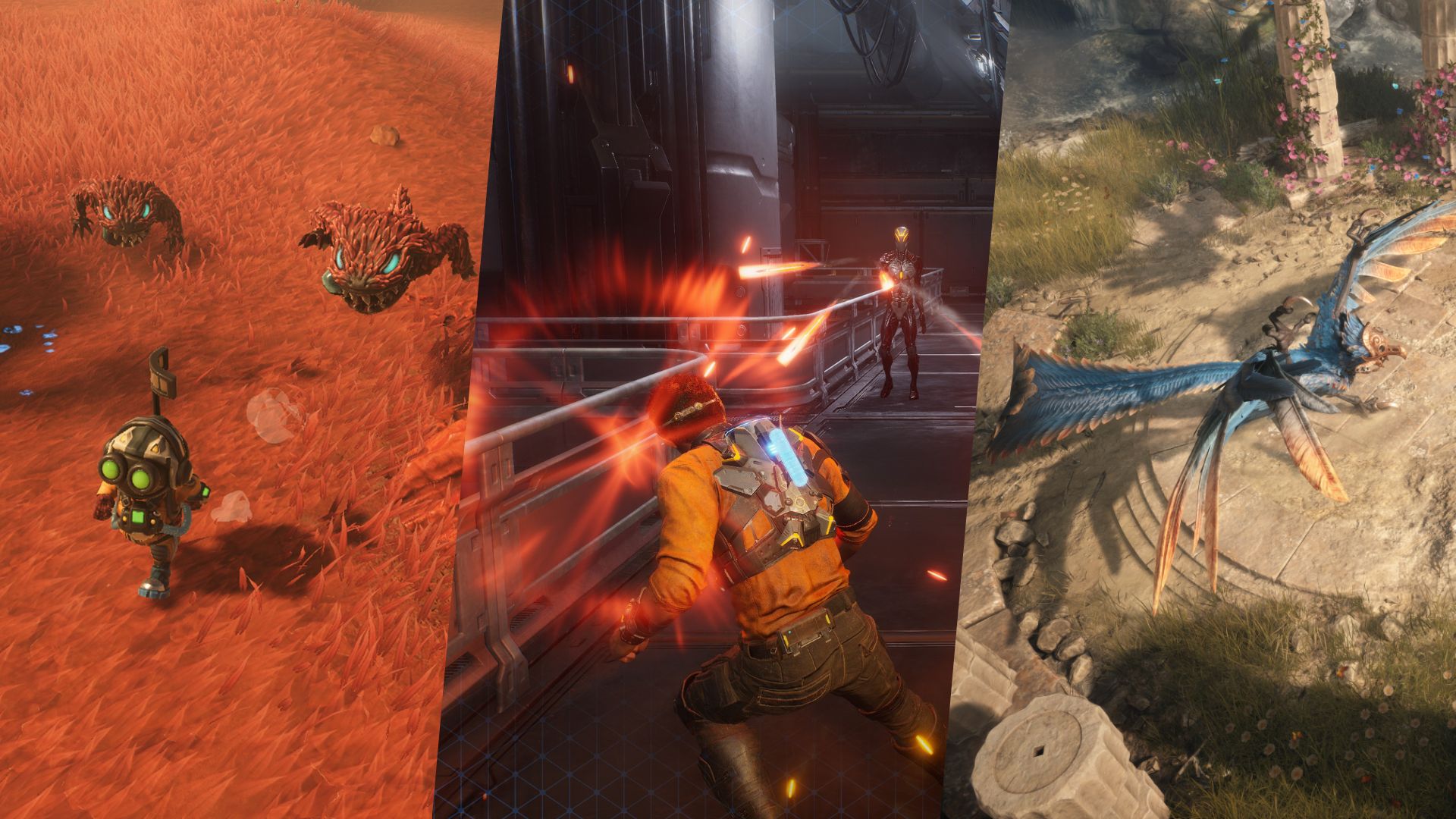 Difficile fare previsioni su quella che sarà l’estensione della mappa di gioco che, da quanto abbiamo visto in un video gameplay mostrato da THQ Nordic, sembra anche piuttosto piccola. Lo stile artistico scelto da Mirage Game Studios, tuttavia, è senza dubbio molto interessante grazie ad ambienti con fauna e flora che ricordano molto quelli di No Man’s Sky, e riusciranno bene ad immergere nel contesto alieno. Stesso discorso per la colonna sonora, che durante una boss fight si è rivelata condita con suoni elettronici che alzano il ritmo del gameplay, e potrebbe quindi nascondere ancora altre chicche interessanti.
